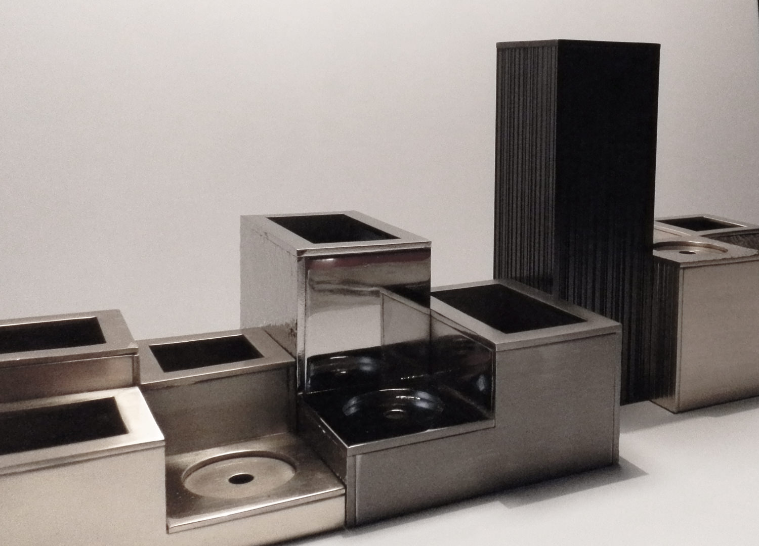 An modular sculptured centrepiece designed to dress a dining room table with flowers and candles